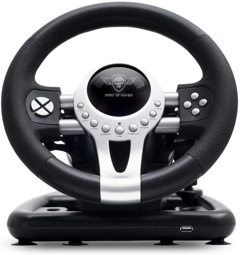 Le spirit of gamer donne l’ impression de piloter une vraie voiture de course. Son double moteur de vibration, son pédalier double à ressort pour des dosages progressifs et la maîtrise de l’accélération et un freinage très précis accentuent cette sensation. Le pack de pilotage de race Wheel Pro 2 à l’avantage d’être connecté à plusieurs plateformes compatibles Switch, PlayStation 4, Xbox One, PlayStation 3 et PC. Sur un PC (Windows XP à Windows 10), il est possible de brancher le volant en installant simplement le driver Race Wheel Pro 2.